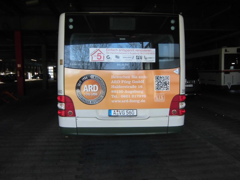 Regelmäßig gestalten für die ARD Förg GmbH aus Augsburg verschiedene Werbemittel. Zuletzt gehörte auch ein Bus dazu. Nach Vorlage der letzten mobilen Werbeplattform erstellten wir ein erneuertes Design für den Zieharmonikabus, welcher jetzt in Augsburg regelmässig seine Runden dreht.